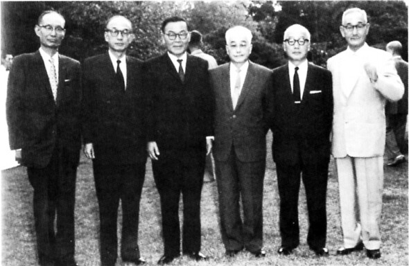 윤씨 가문의 사람들 / 가운데 윤보선 대통령 오른쪽 두 사람이 윤치왕과 윤치창이다.