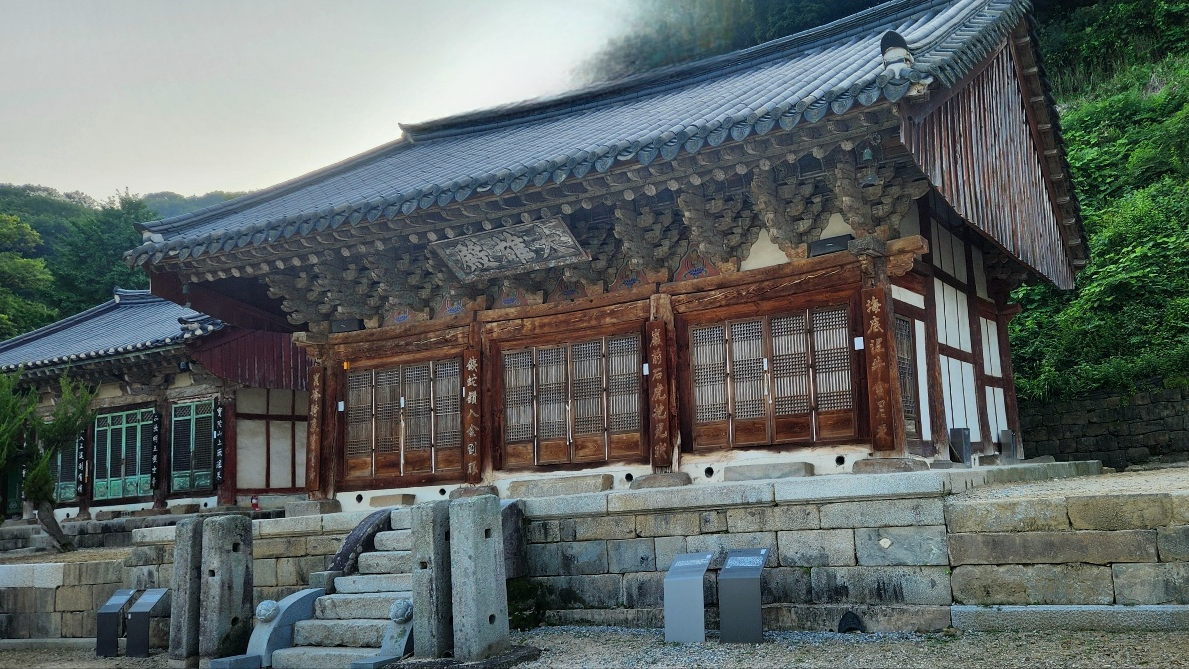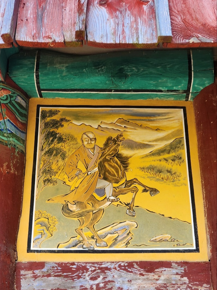 칠장사 대웅전명부전의 궁예 벽화 / 근자에 그려진 것이다.칠장사 입구의 철당간