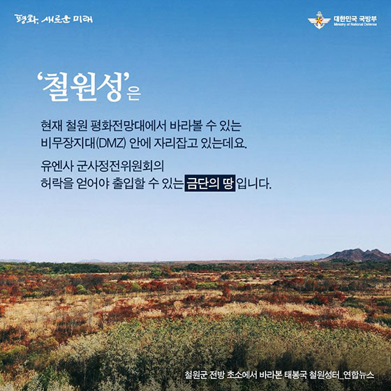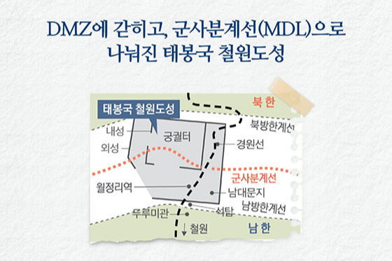 대한민국 정책 브리핑이 설명하는 철원도성현재 철원도성으로 가는 길은이처럼 위험하다.2023년 1월에 찍은 사진이다.철원역사문화전시관의 태봉국 철원성 안내문일제강점기 촬영된 철원도성 터철원도성 미니어처철원도성은 남북군사분계선에 의해 정확히 반으로 나뉜다.소이산전망대에서 바라본 철원평야