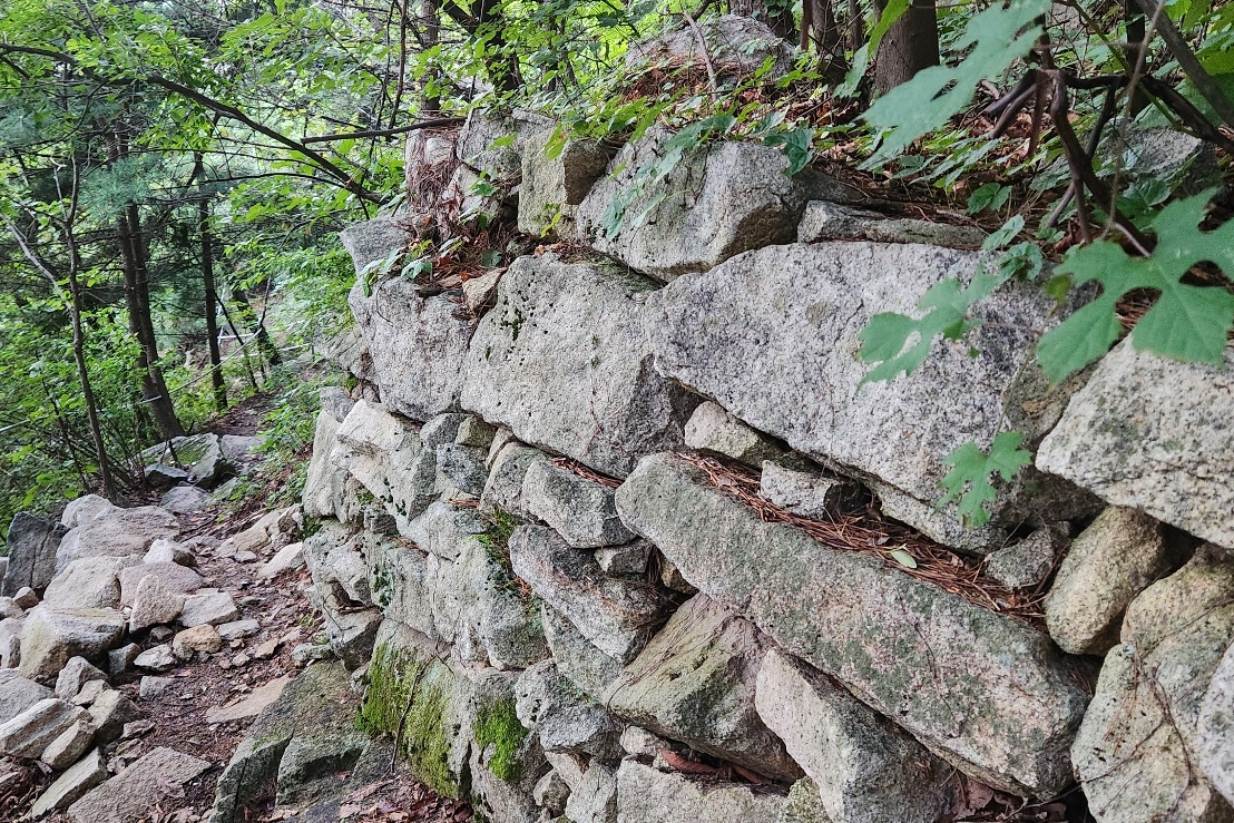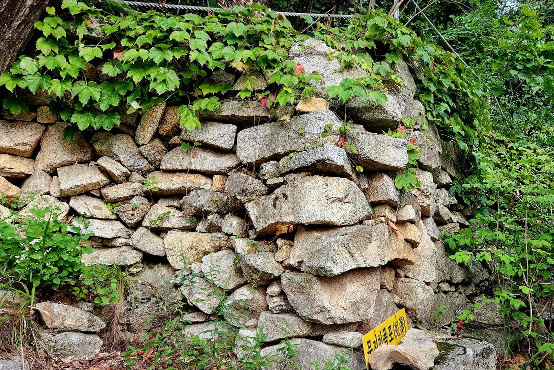 궁예성 북문지 성벽으로 추정되는 곳북문지 성벽의 치(雉)치에서 바라본 산하잔존하는 성벽 구간