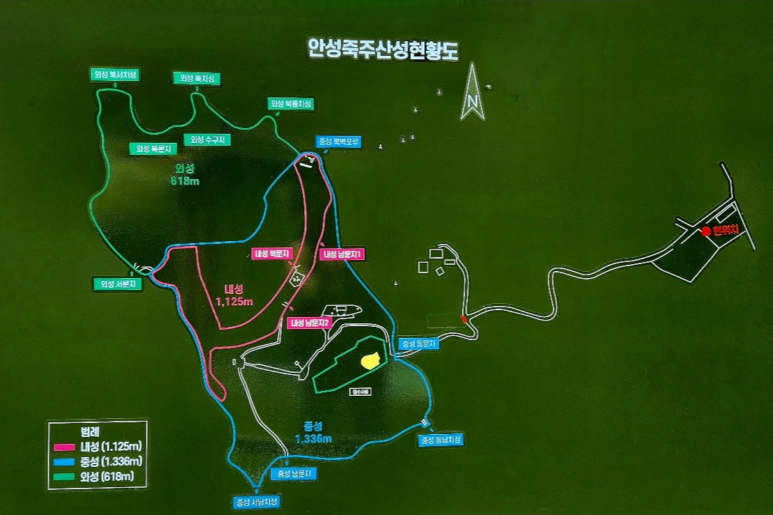외성 내성 중성으로 이루어진 죽주산성의 현황도죽주산성 동문죽주산성 남문죽주산성 암문