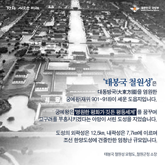궁예의 후고구려는 완산주(전주)를 도읍으로 건국된 남쪽의 후백제와 10년간 한반도의 패권을 겨뤘는데, 그 중간인 905년 도읍을 국토의 중앙인 철원으로 옮겼다. 궁예가 송악을 근거지로 후고구려를 세울 때 건국을 뒷받침한 세력이 바로 패서인들이었던 바, 송악은 사실상 왕건의 구역이라 할 수 있었다. 까닭에 일말의 불안의 느낀 궁예는 철원평야에 신도시를 세워 천도하고 국호도 태봉으로 바꾸었다.