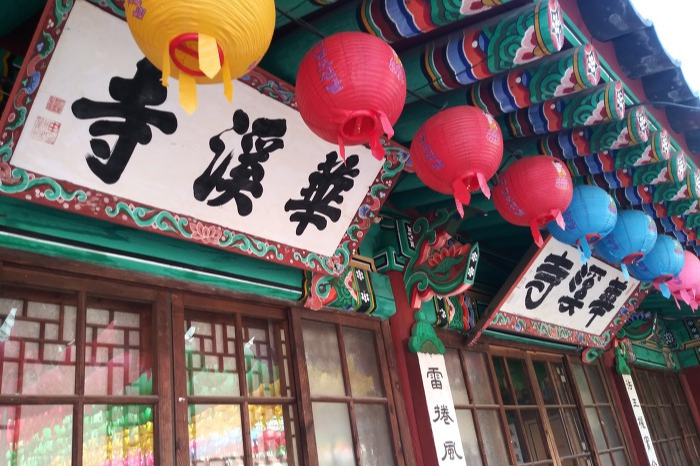 서울 화계사의 신헌 글씨 / 보화루에 걸린 것으로 오른쪽 흥선대원군의 글씨와 함께 나란히 걸려 있다. 두 사람은 모두 추사 김정희의 제자로서 신헌은 훗날은 강화도조약 및 조미수교를 체결한 인물이다.