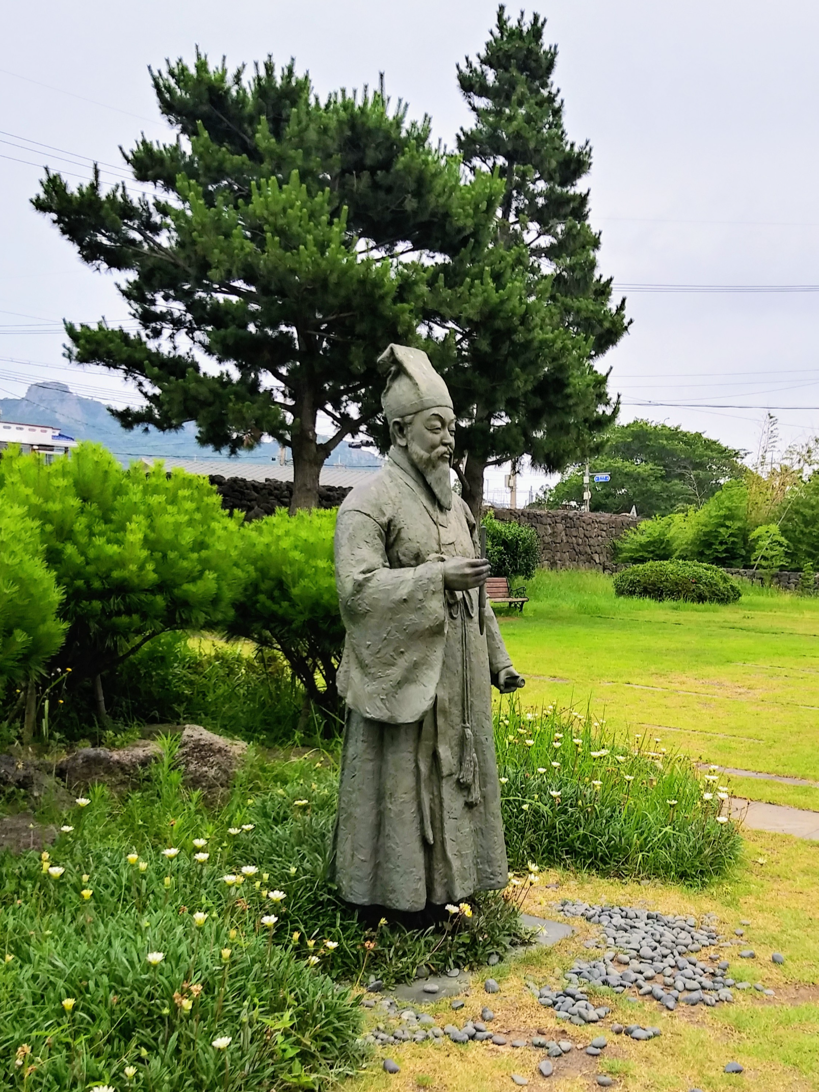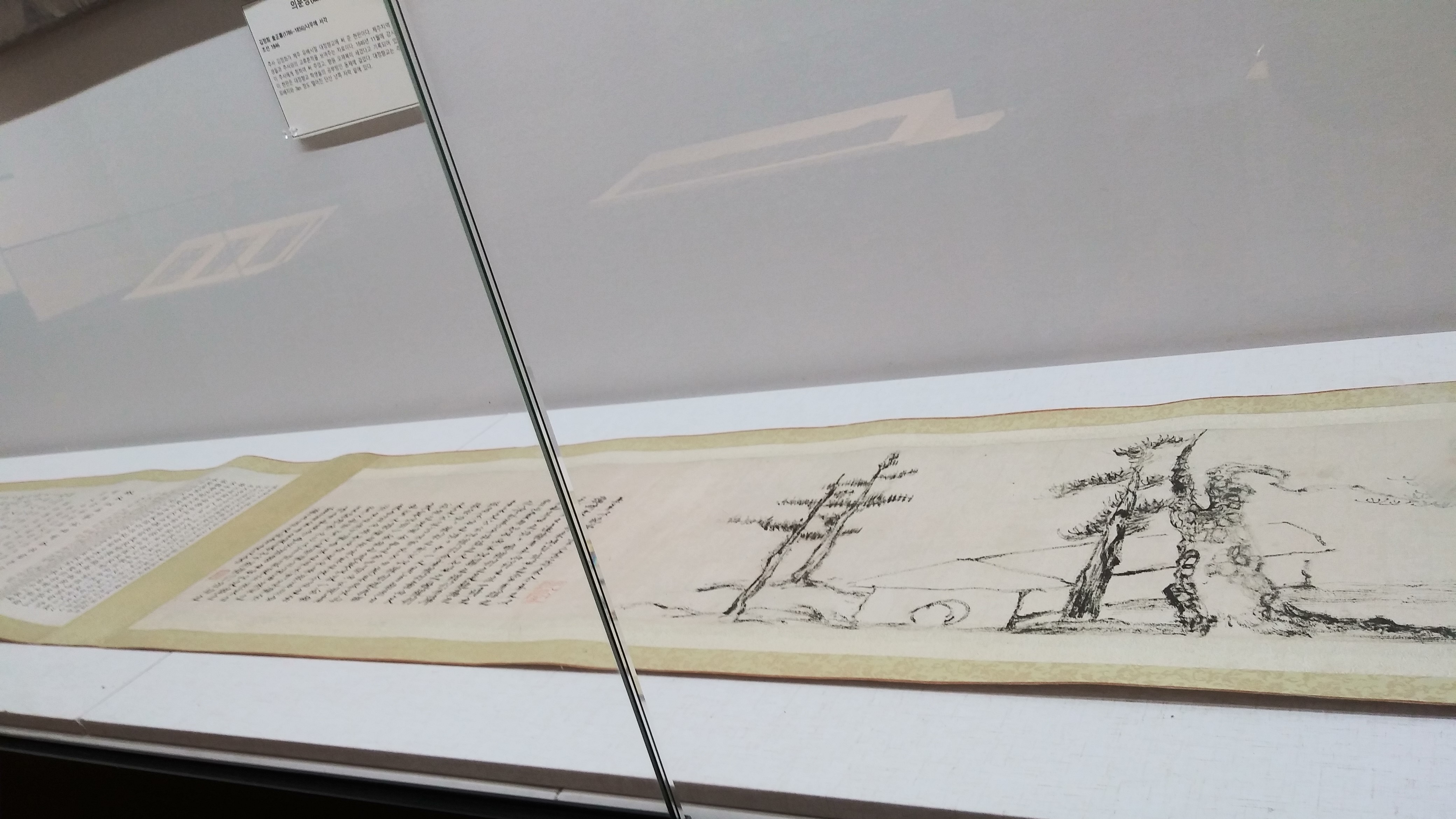 부근의 김정희 동상 제주추사관에는 추사의 많은 작품이 전시돼 있지는 않으나 적어도 위작의 논란이 있는 것은 제외되어 있는 듯하다. 전문가의 세심함이 느껴지는 부분이다. 그래서 원본이 아닌 사본 일지라도 편안한 마음으로 감상할 수 있는데, 그 중심에 있는 그림은 당연히 '세한도(歲寒圖)'다. 바로 추사가 제주 유배지에서 그린 그림이기 때문인데, 그는 거기에 '세한연후 지송백지후조야(歲寒然後 知松柏之後凋也)'라는 논어의 글귀를 써넣었다.