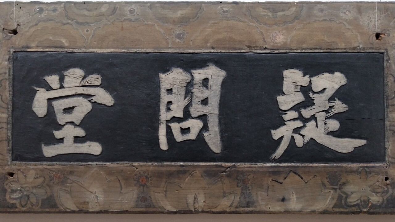 대정향교 동재(東齊) 현판 '의문당' / 추사의 유배시절인 1846년에 쓴 글로 대정 훈장 강사공이 간청해 받았다. 의심이 있으면 당연히 물어야 한다는 뜻이다.(제주 추사관)