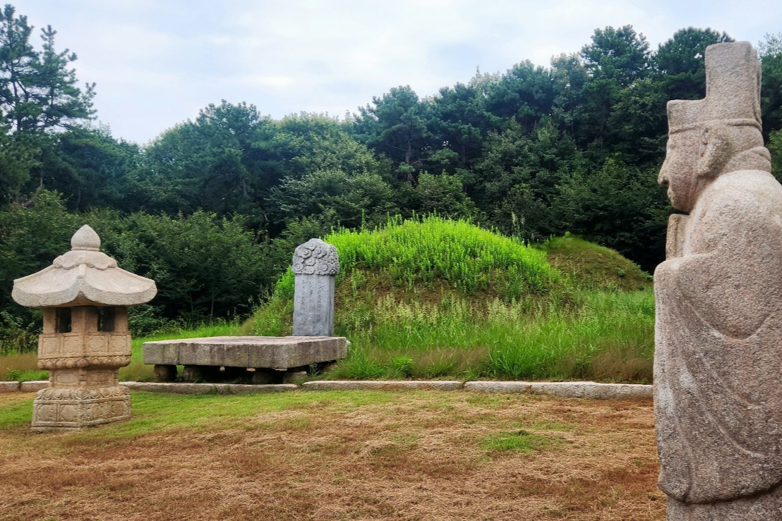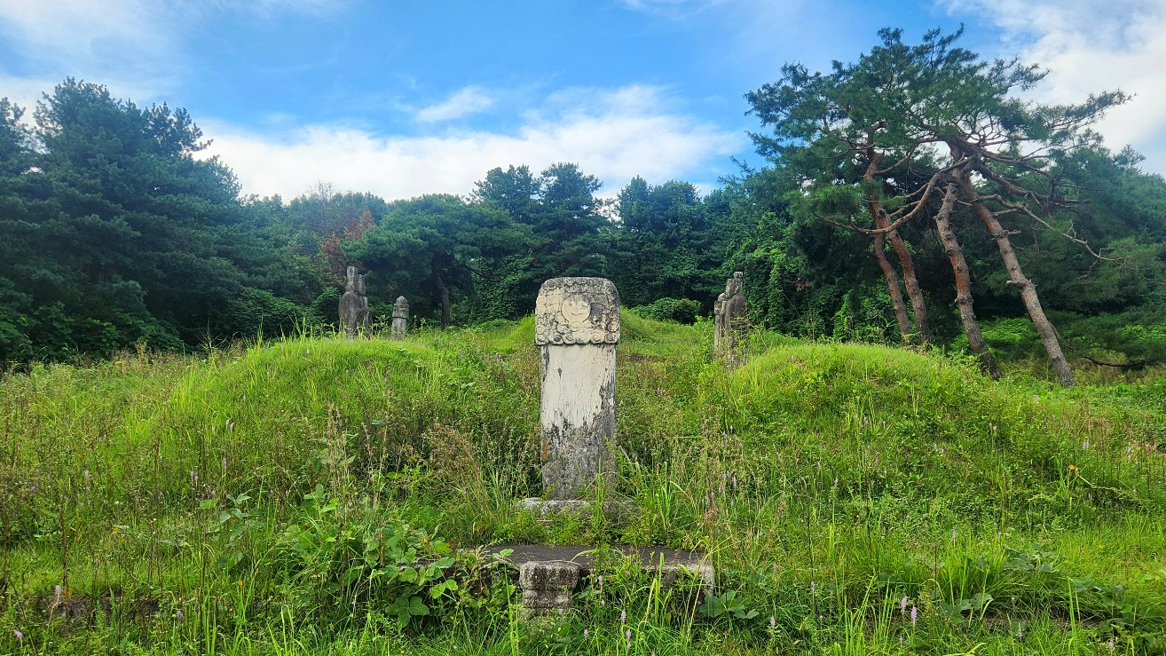월산대군의 무덤 뒤의 승평부부인의 무덤 하지만 유감스럽게도 이상은 모두 사실인 듯하다. 또라이 연산군이기에 가능한 이야기다. 다만 박씨 부인은 간통이 아니라 불가항력이었을 것이다. 아마도 그래서 자살했을 것이다. 아무튼 그녀는 죽어 남편 곁에 묻혔는데, 그 무덤을 보면 왕족이라 크긴 하지만 어쩐지 을씨년스럽다. 그리고 일반적인 경우처럼 사후 합장하여 한 무덤 안에 두거나 옆으로 나란히 만들거나 하지 않고 남편의 무덤 뒤에 숨듯 만들어 두었다. 그 이유는 모르겠다. 부끄러우니 숨어 있으라는 것인지, 아니면 든든한 남편 뒤에서 안심하고 편히 쉬라는 것인지.....