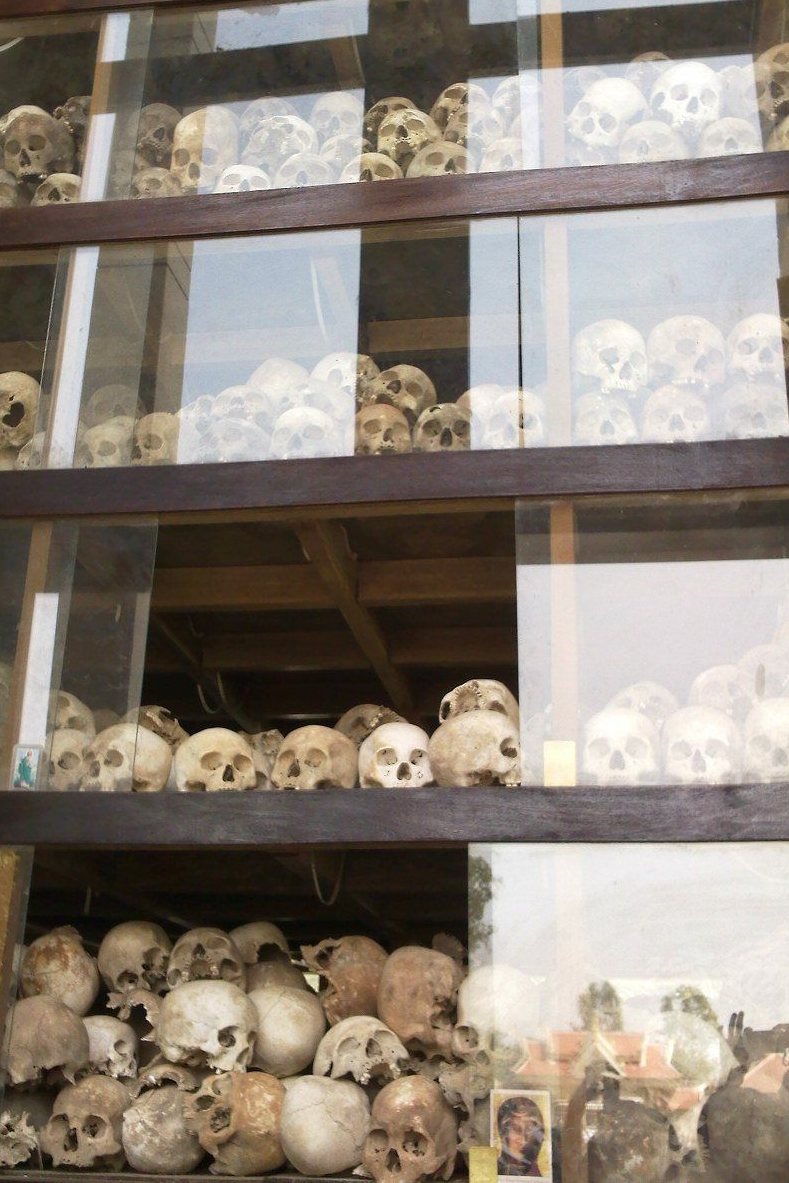 캄보디아 킬링필드에 희생된 사람들의 인골 묘지 와트마이사