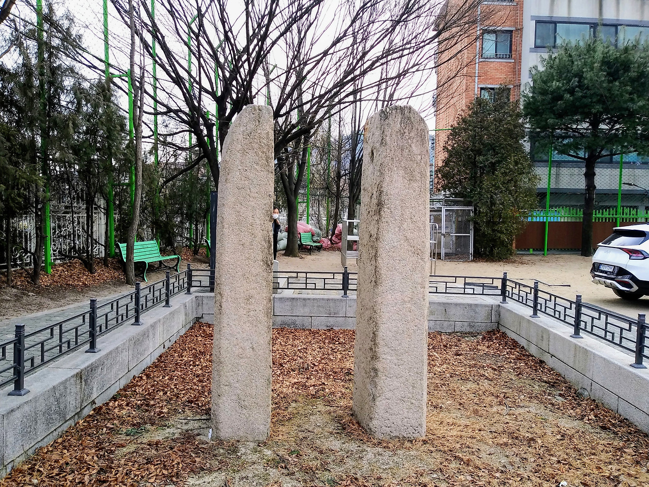 세검정초등학교 안에 있는 장의사 당간지주 / 서울시 내에 있는 유일한 당간지주로 절은 연산군 12년 폐사되었다. . 오늘 말하려는 곳은 차일암(遮日巖)으로, 탕춘대 앞 계류를 끼고 세검정까지 이어져 있는 넓직한 바위를 이르는 말이다. 차일(遮日)은 '햇빛을 가린다'는 의미로서 바위를 살펴보면 지금도 차양막을 치기 위해 기둥을 박았던 구멍의 흔적을 찾을 수 있다. 차일암의 명칭은 여기서 유래되었다. 그런데 조선시대 사람들은 차양막 아래서 무슨 일을 했을까? 그보다는 왜 차양막을 쳤을까?