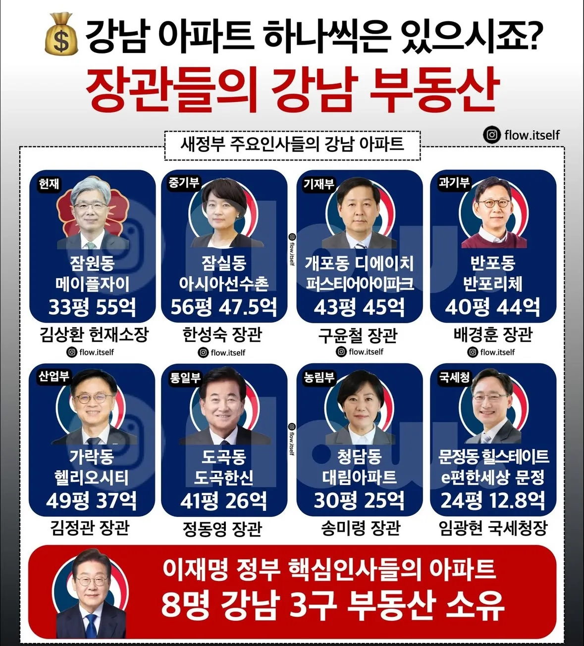 양심도 상실하였으니, 헌재소장과 장관을 포함한 이재명 정부의 핵심 인사 11명은 강남3구에 부동산을 소유하고 있으면서도 국민들은 임대아파트를 선호한다고 말하며 입주를 유도하고 있다. 그렇게 좋으면 자신들이나 임대아파트에 살 것이지 국민의 상위 1%만이 살 수 있는 그곳에 11명이나 들어가 사는 이유는 무엇인가? (언뜻 좌파들이 청빈하다고 생각되지만 그 역시 좌파들이 만든 프레임에 불과하다) 그나저나 빨리 관세를 내려 기업들이 무역을 할 수 있는 환경을 만들어주길 바란다. 그 방법이 무엇인지는 그들이 이미 알고 있다.