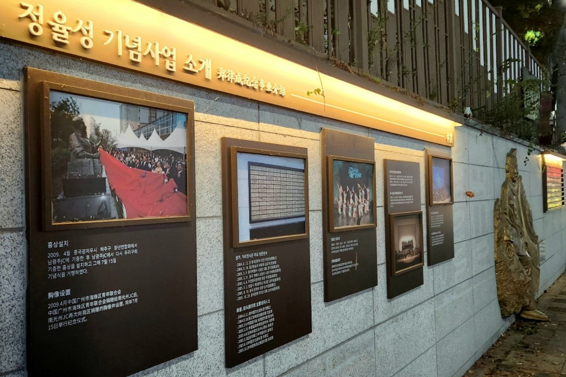정율성의 업적(?)과 기념사업이 소개된 안내문