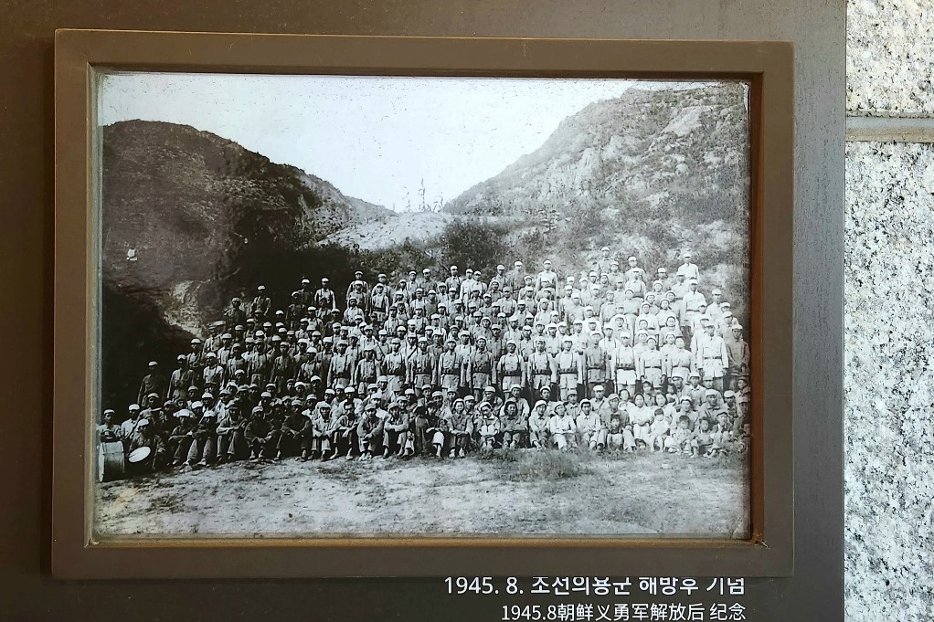 벽에 전시된 1945년 8월 조선의용군 기념사진