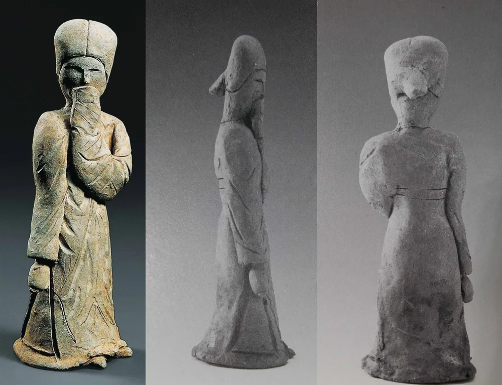 드라마 '미실' 속의 여왕과 귀족 부인의 복색 그 아쉬움을 조금 희석시켜준 것이 1986년 경주 용강동 돌방무덤(석실분)에서 나온 토용(土踊, 흙으로 만든 인형)이었다. 출토된 토용은 남자 15점, 여자 13점으로서, 크기는 작아 남자 13.8~20.5cm, 여자는 11.7~17.2cm에 불과했다. 하지만 표현이 섬세해 등신대 토용 못지않게 복색에 관한 모든 것을 파악할 수 있었는데, 이 가운데의 서역인 문관 토용은 앞서 소개한 바 있다. 당대의 신라 사회는 코카서스 계통의 서양 외국인들도 들어와 관료로서 입신할 수 있는 개방사회였던 것이다.