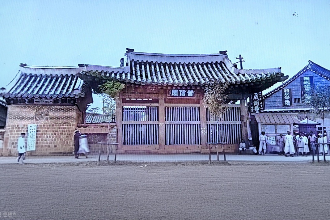 을밀대와 현무문 / 일제가 1920년 발행한 <조선풍속풍경사진첩> 속의 사진으로, 청일전쟁 당시 이곳에서 청군 섭지초와 일본 오시마 요시마사 군 사이에 격렬한 전투가 벌어졌다. 전에도 말했지만 평양전투에서는 아무 죄 없는 조선인 3만 명이 희생되었고, 나아가 개성에서는 조선군끼리 서로 총질을 하는 최악의 상황이 벌어지기도 했다. 서로 간의 반목으로 발생한 일이 아니라 청군에 소속된 평안감사 휘하의 군인들과 일본군에 소속된 경군(京軍) 장용영 군인들이 전투에 내몰린 결과였다. 청군과 일본군은 이 조선군들을 총알받이로 앞장 세웠고, 살기 위한 본능으로 조선군끼리 싸우는 비극이 벌어진 것이었다.