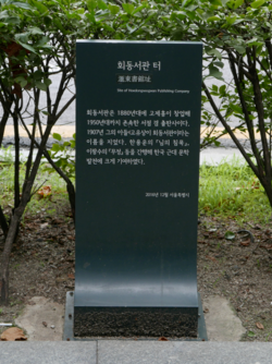 '우리은행 종로금융센터' 앞의 '회동서관' 터 표석