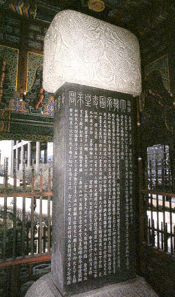 "9월 7일(음력 8월 6일), 일요일, 비 / 대황제의 찬란한 업적을 찬양하는 글을 새긴 기념비가 서울에 세워질 예정이다. 이 일을 위해서 정부의 모든 관료들이 1개월분 녹봉을 포기해야만 했다. 그 돈만으로 충분하지 않았기 때문에 전 국민의 주머니를 털어야 했고, 13개 도의 유지들은 자발적으로 기부하라는 강요를 받고 있을 것이다. 함경남도는 2만 5,000냥, 즉 5천 달러를 내야 한다. 우리 구역인 덕원은 1,100냥을 내기로 되어 있다....."고종이 즉위한 지 40년이 되는 해(御極四十年)를 기념해 1903년 지어진 이 기념비전은 각 도(道)와 군(郡)에 부과된 돈으로, 즉 팔도 백성들에게 나눠 부과된 돈으로 지어졌다. 즉 백성들의 고혈로 구축된 황제의 송덕기념비에 다름 아니었으니, 비문은 관료 중 가장 많은 돈을 낸 농상공부대신 민병석이 썼다.