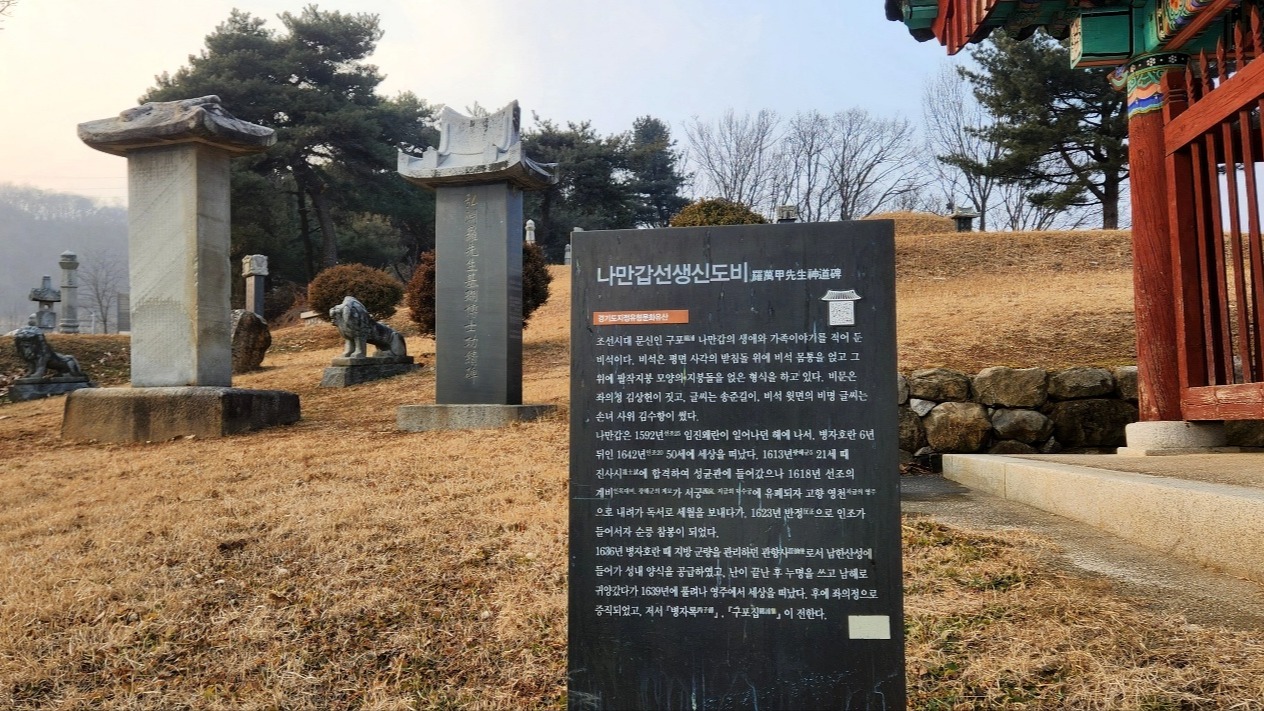 ※ 나만갑(1592~1642)은 역사적으로 아주 유명한 인물은 아니나 <병자록(丙子錄)>의 저자로써 그의 유적을 조명하고자 한다. 그가 남한산성 피신 중에 쓴 일기형식의 <병자록>은 병자호란에 관한 사실성 있는 귀한 자료로 평가받는다. <병자록>에는 인조 14년(1636) 12월 12일부터 이듬해 2월 8일까지의 호란에 관한 참상이 생생히 기록돼 있다.