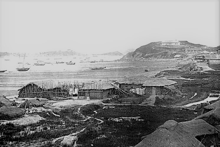 1884년 11월에 찍은 제물포항 / 오른쪽 언덕 위의 건물이 영국영사관이다.