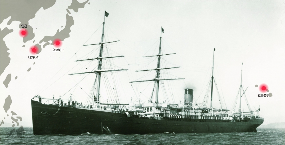 그들 1033명의 이민자는 양반 상놈 구별 없이 모두 화물칸에 타 좁은 영역을 차지했다. 여객선이 아닌 화물선이기에 애초부터 여객을 위한 시설이 전무한 배 안에서 그들은 뱃멀미에 시달렸고, 배의 요동침에 요강이 엎어지거나 깨지면서 그 안에 담겨 있던 토사물과 오물이 바닥으로 쏟아졌다. 욕설과 한탄, 비난과 주먹다짐이 일상사였고 고약한 냄새들은 가시지 않았다. 빨래나 목욕 같은 사치스러운 일은 아무도 꿈꾸지 않았다. 그저 배가 빨리 도착하여 단단한 땅에 서는 것만이 승객들의 소망이었다.